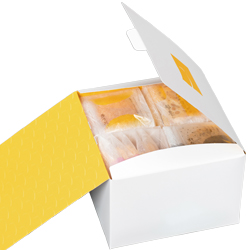 ●きなこ雪餅:うるち米(国産)、植物油脂、きなこ、ぶどう糖、砂糖(和三盆糖5割)、でん粉、食塩、粉末しょうゆ、シナモン/植物レシチン、調味料(アミノ酸)、カラメル色素、(一部に小麦・大豆を含む)
