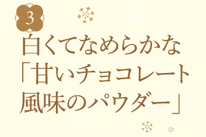 こだわりはパウダーの細かさと、粉雪のような見た目のチョコレート風味の不思議な味わい。