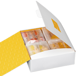 ●越乃豆もち:水稲もち米(国産)、大豆、植物油脂、でん粉、食塩/調味料(アミノ酸等)、植物レシチン、(一部に大豆を含む)